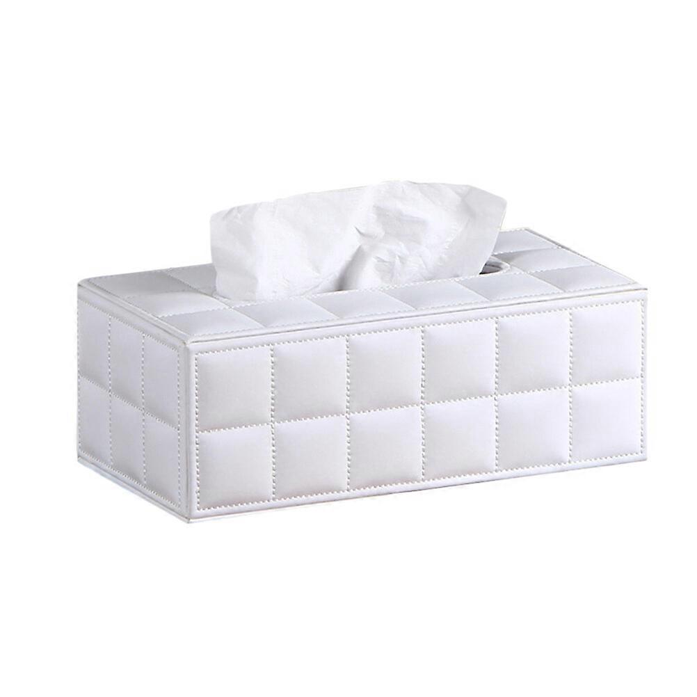 White PU Tissue Box Holder for Bathroom/Bedroom Vanity & Countertop