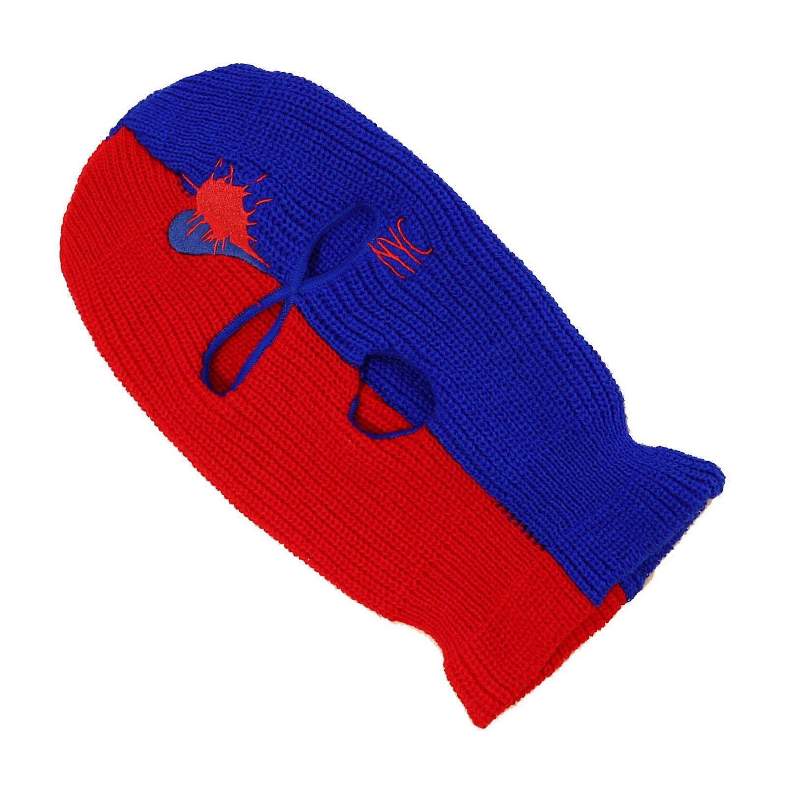 Halloween Knitted Color Block Hat Beanies Warm Full Face Cover Ski Mask Hat Windproof Balaclava Hat for Men Womens red blue