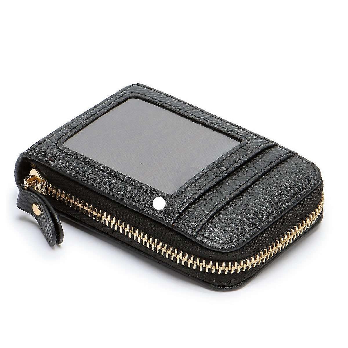 Genuine Leather Men Wallet Credit Card Holder RFID Blocking Zipper Pocket Thin