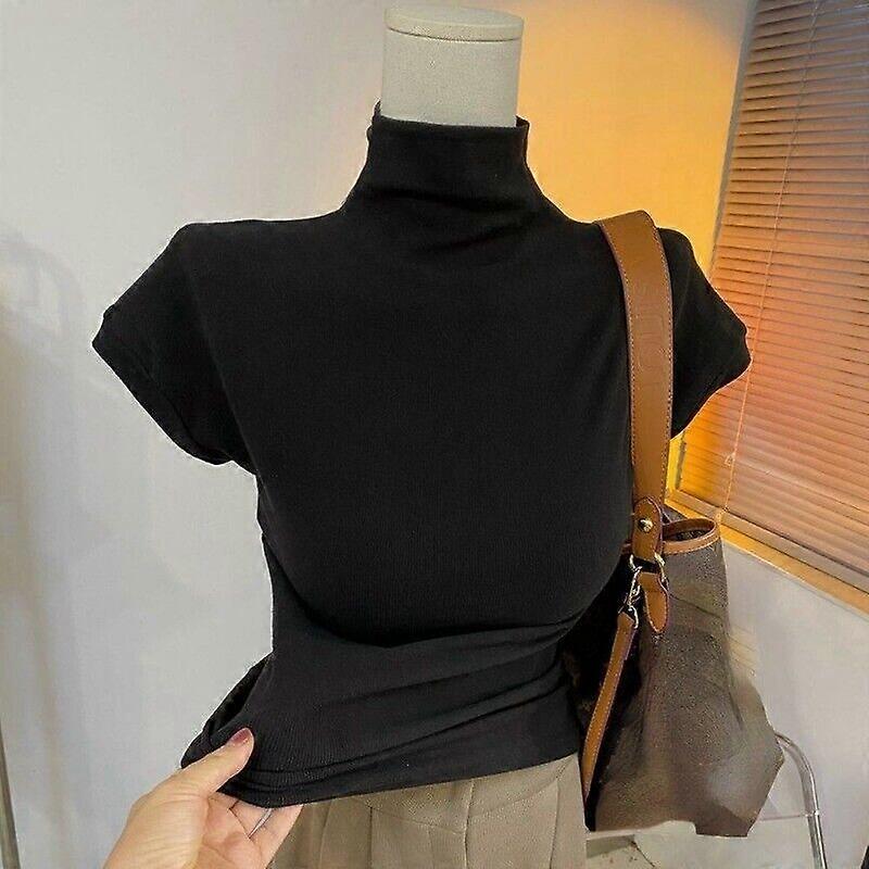 Women Turtleneck Top Short Sleeve Undershirt Slim Fit Bottoming Blouse Tee