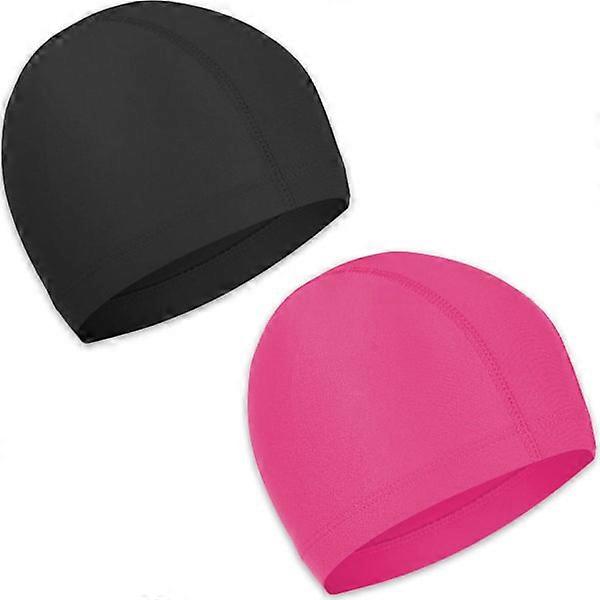 2 pcs elastic swim caps comfortable non-slip fabric swim cap lightweight swim caps for women men children for swimming Black, Rose Pink