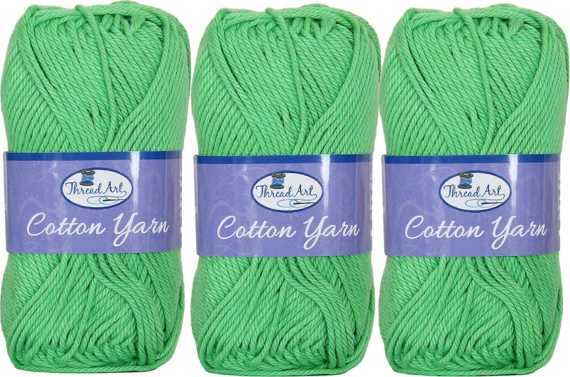 3 Pack of 100% Pure Cotton Crochet Yarn by Threadart | Green | 50 gram Skeins | Worsted Medium #4 Yarn | 85 yds per Skein - 30 Colors Available