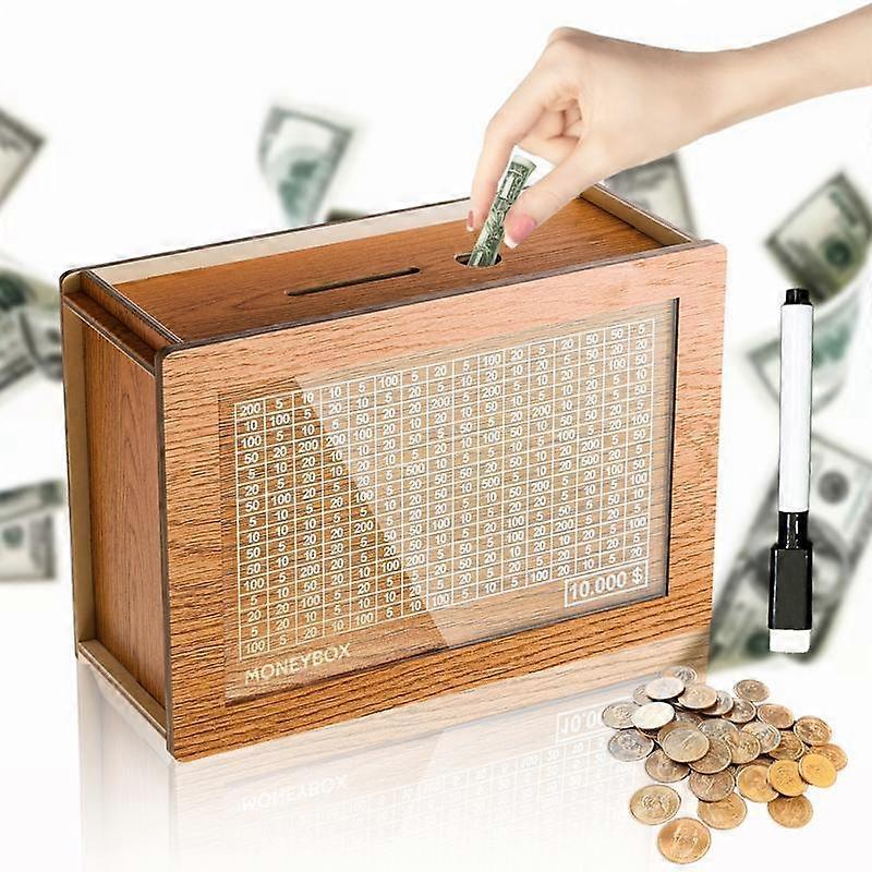 10000 Larger Size Savings Challenge Box for Adults Kids - Cash Vault Wooden Money Savings Box - Kakeibo Money Bank - Pink Wooden Cash Coin P