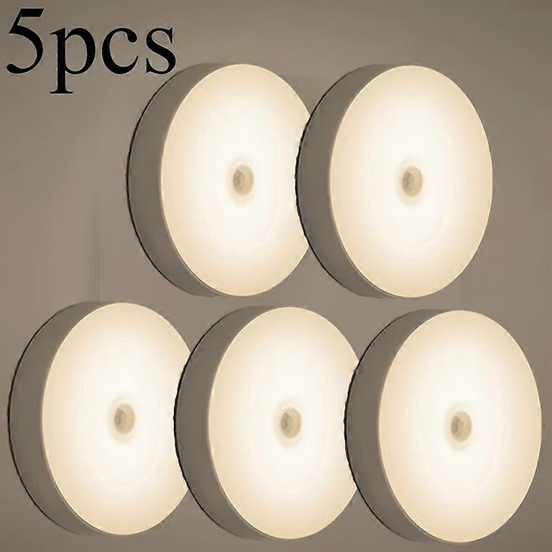 5pcs Magnetic Night Light, Human Sensor LED Small Round Light, Corridor, Closet, Stairs, Desk, School, Bedroom Sensor Round Ligh