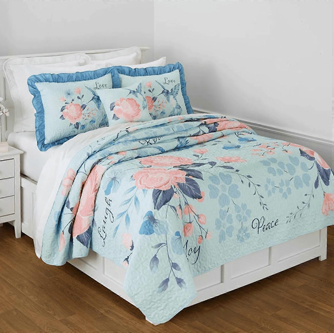 The Lakeside Collection Live Laugh Love Floral Blue and Pink Polyester Quilt, Full/Queen