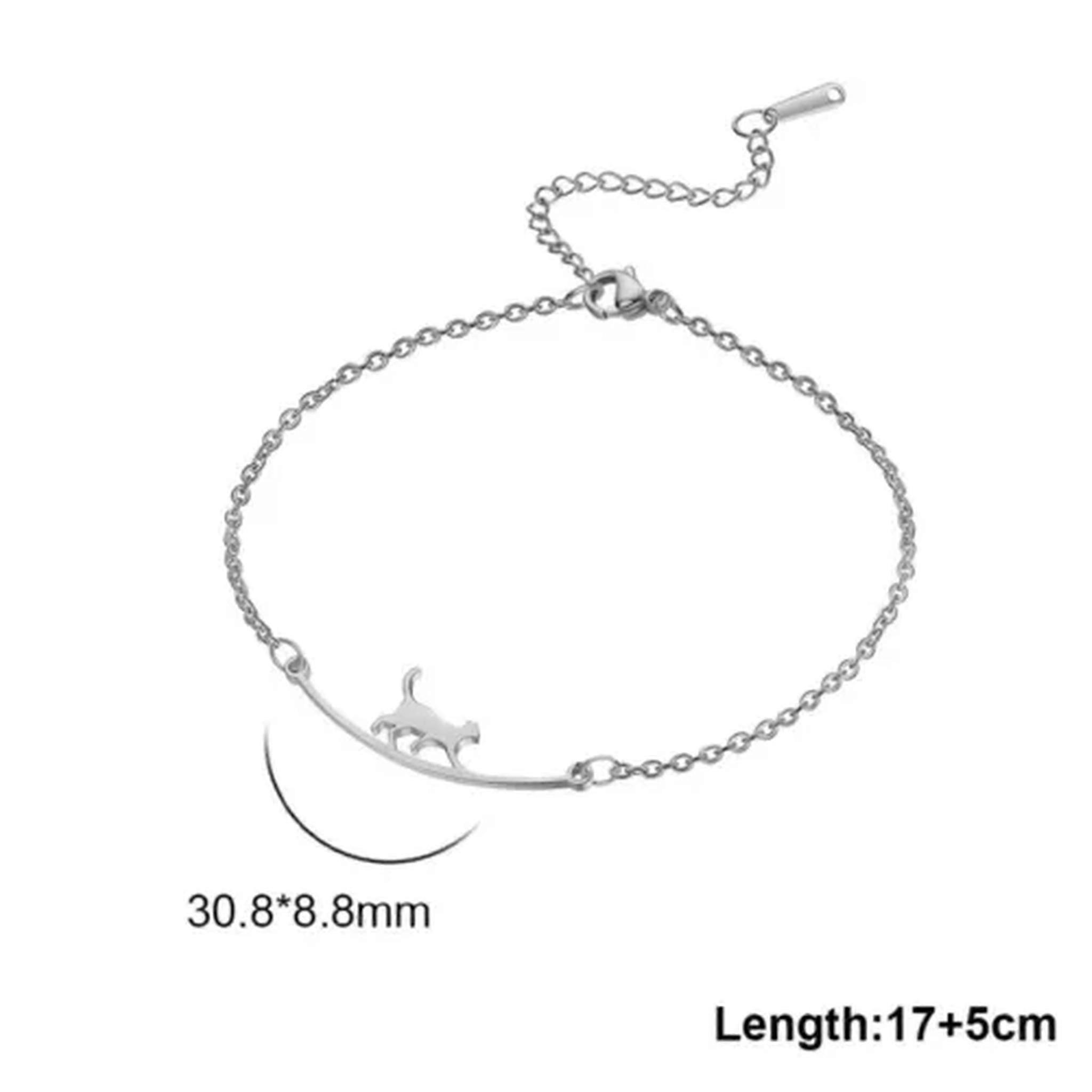 RSAMD Walking Cat Charms Bracelets for Women Girls Cute Animal Kitten Pendant-A Steel Color