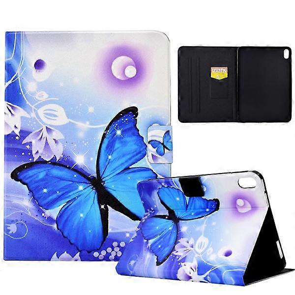 Compatible with iPad 11 11th Gen / 10.9 10th Gen 2022/2025 Case - Electrically Pressed TPU Smart Leather Case Blue Butterfly