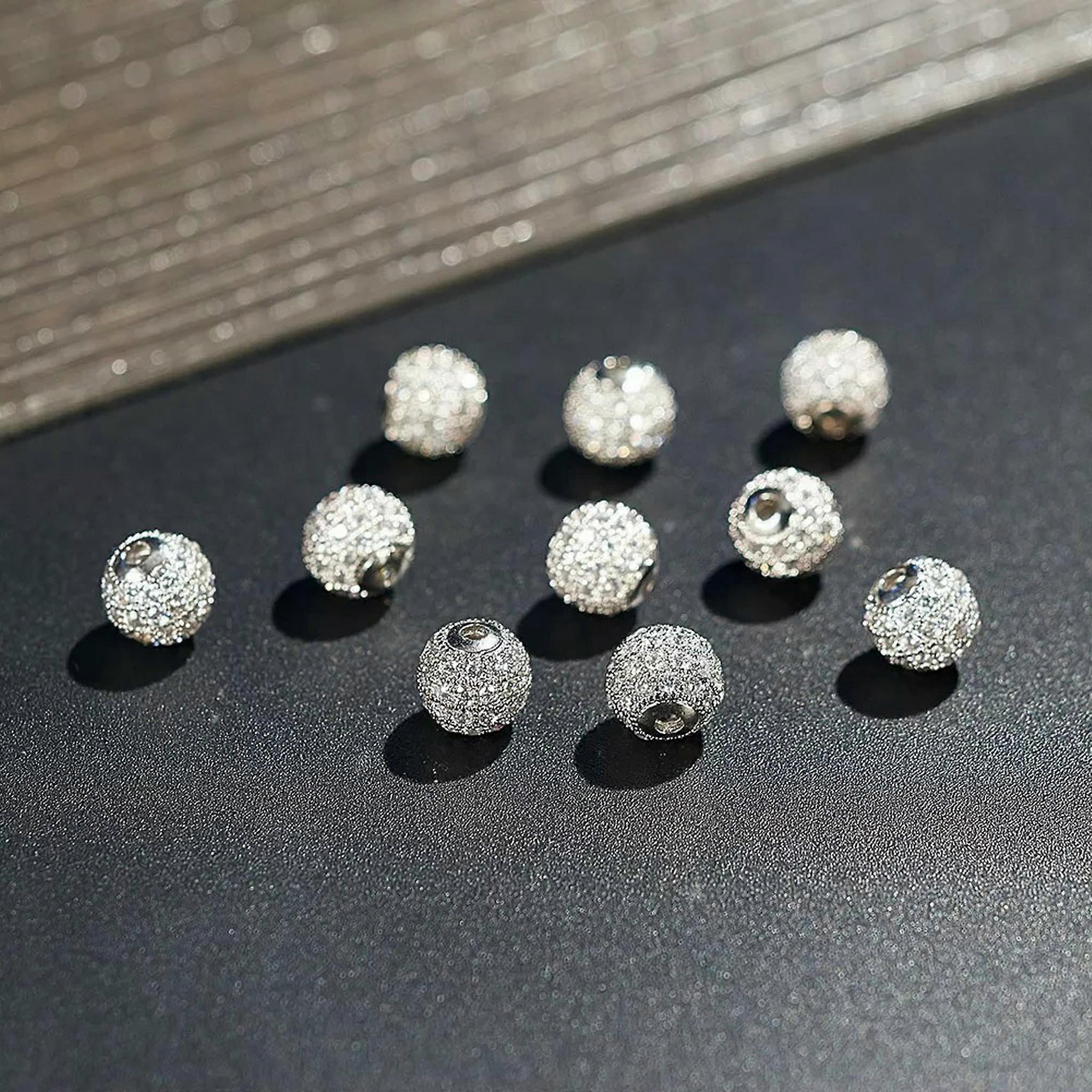 RSAMD 10Pcs 8mm Brass Clear Silver Crystal CZ Pave Micro Disco Ball Beads Round Beads