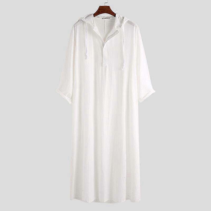 Mens Saudi Jubba Dishdasha Muslim Long Sleeve Hooded Kaftan Cotton Maxi Thobe
