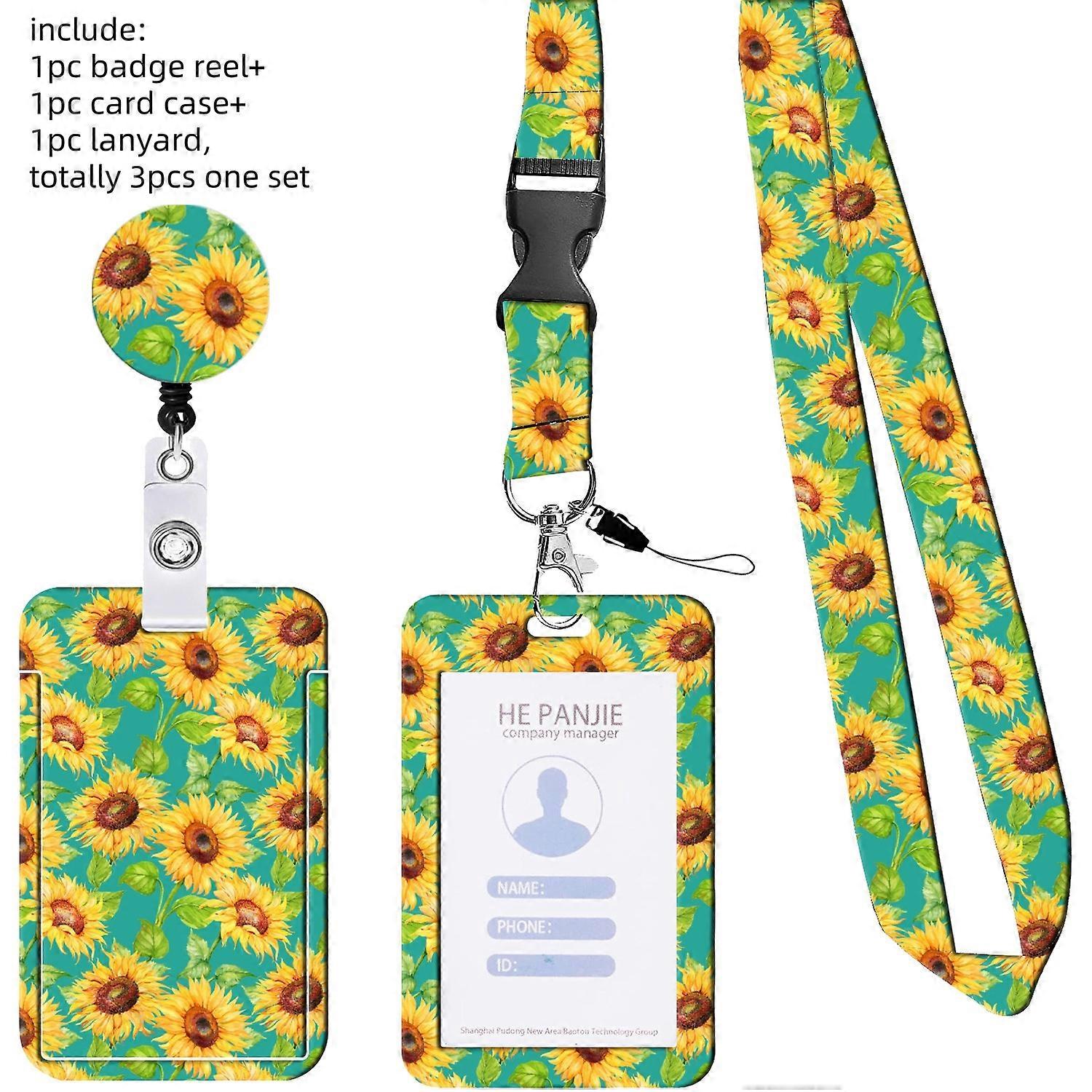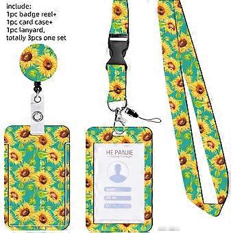 Ladies Girls Flower ID Credit Bank Card Holder Students Bus Card Case Lanyard Child Visit Door Identity Badge Cards Cover Case