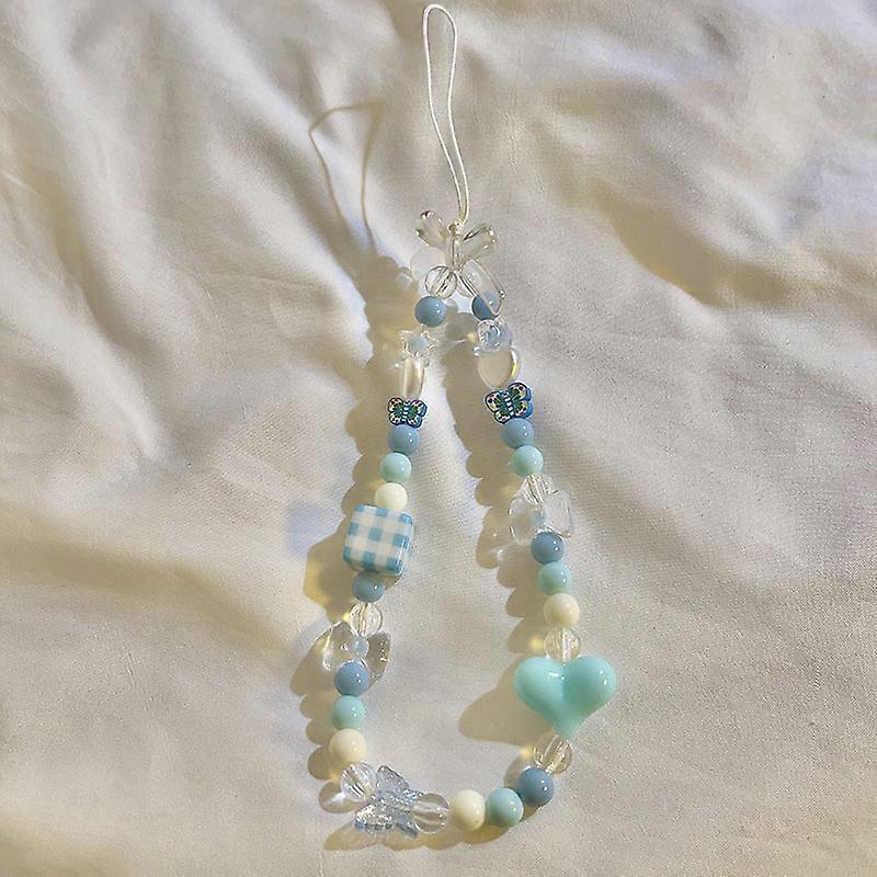 1 Piece Korean Phone Straps White Blue Color Series Butterfly Bowknot Phone Straps for Student Transpanre Lovely Phone Pendant