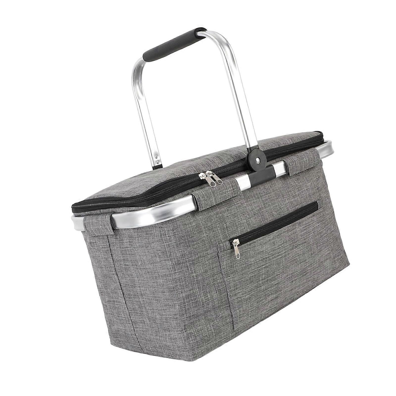 Foldable Outdoor Picnics Hamper with Leakproof Interior and Comfortable Grip Food Storage Bag Suitable for Outdoor Hiking Gray