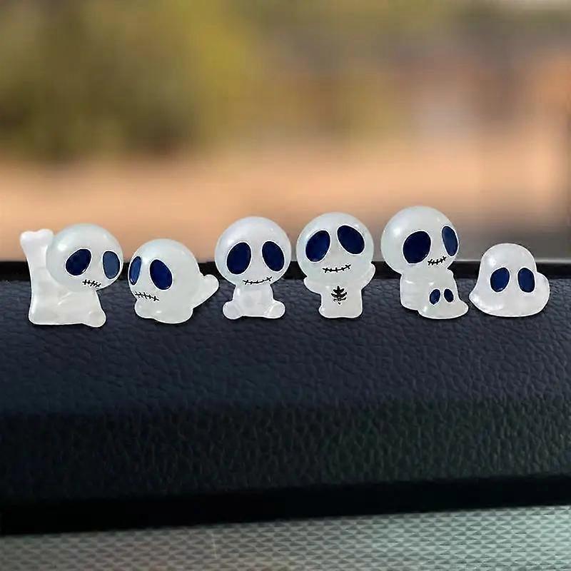 6 Piece Glow Skeleton Mini Resin Car Accessories Set, Cute Auto Interior Decor, Rearview Mirror Dashboard Ornaments, DIY Scene Props