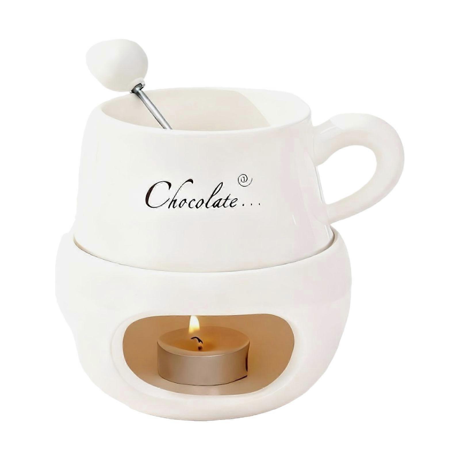 Practical Ceramic Fondue Set Including Small Mug And Fork Chocolate And Cheese Melting Cup Pot Butter Warmer Home Use White
