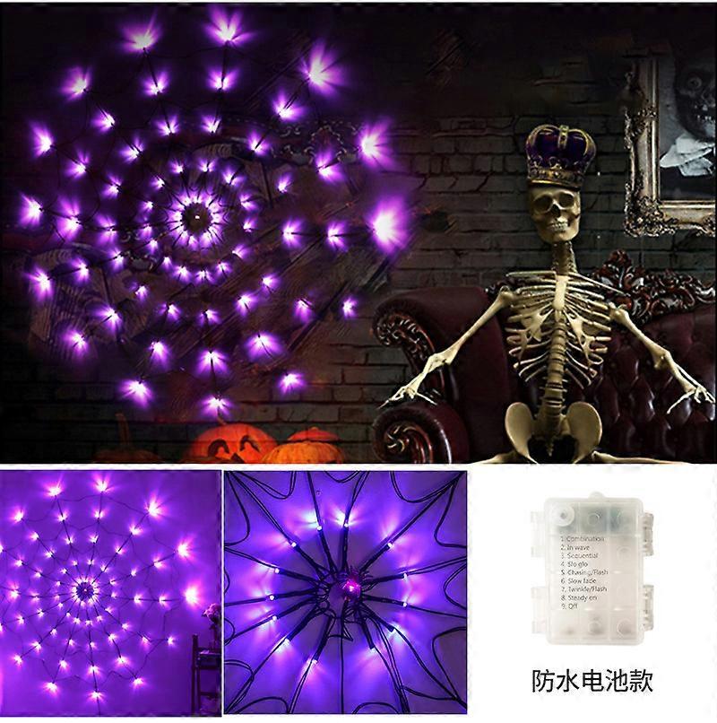 Halloween 96 LED Spider Web Lights Battery Operated 8 Modes with Remote Control Wall Lamp for Party Garden Halloween Decorations