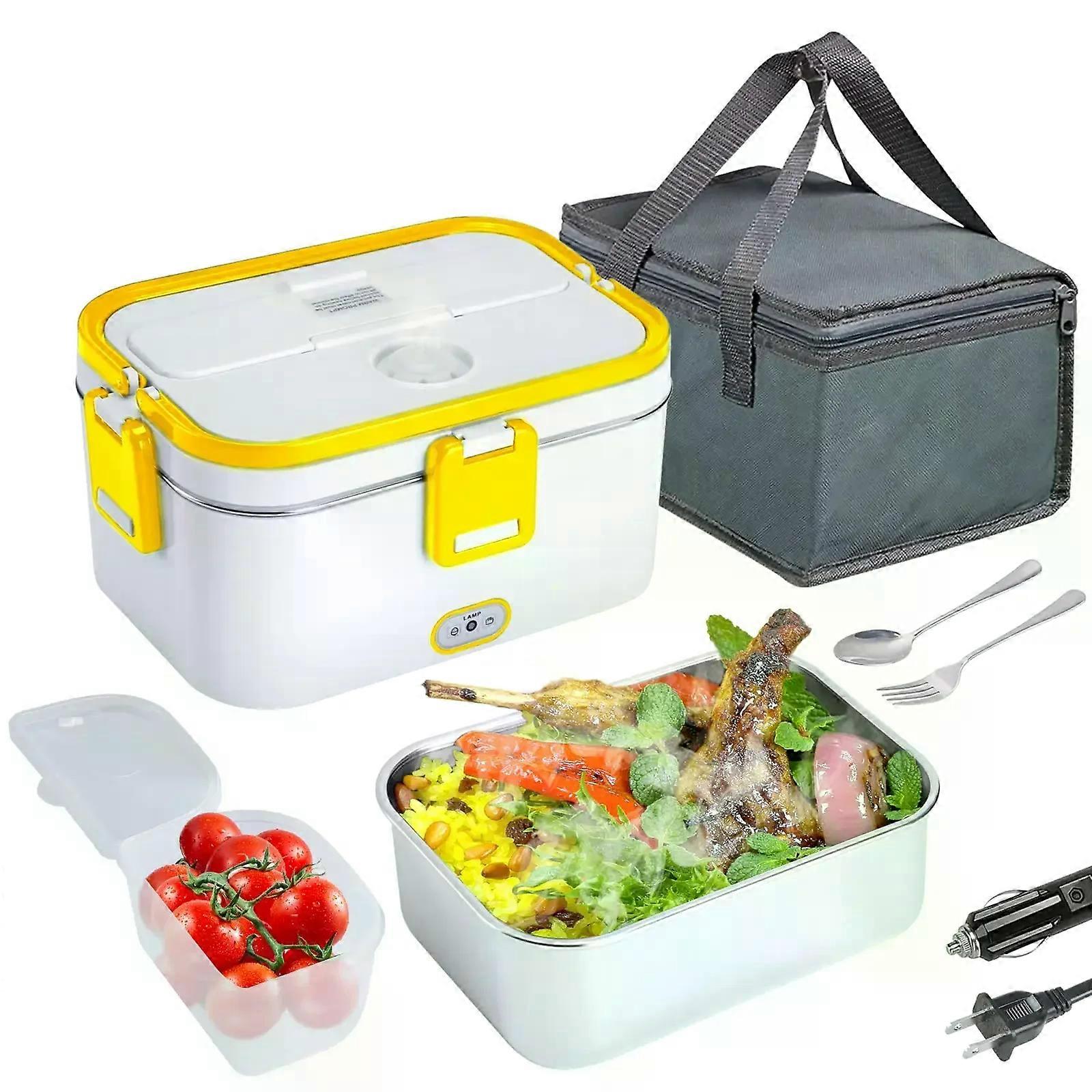 1.8L Electric Lunch Box 60W Food Heated 12V-24V 2-In-1 Portable Food Warmer Heater for Car/Truck/Home Self Heating Box