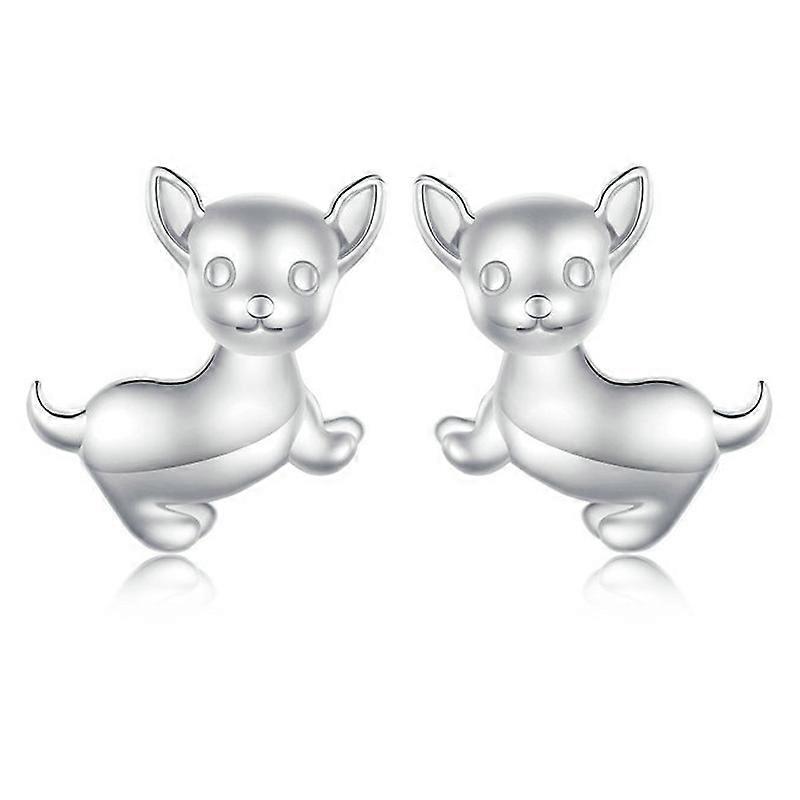 Sterling Silver S925 Platinum Plated Cute Chihuahua Dog Earrings SCE1620