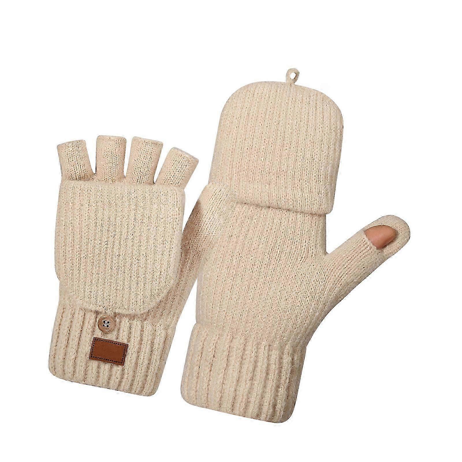 Thickened Winter Gloves Women Half Finger Design Double Lined Windproof For Extreme Cold Red