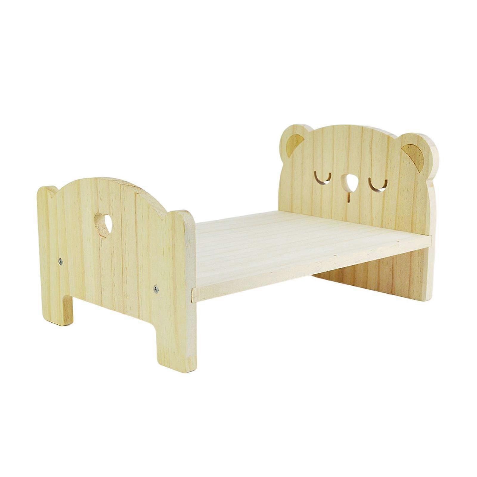 Mini Dollhouse Furnishing 1/6 Scale Wood Bed for Dolls Bedroom Slee Bear