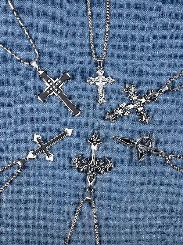 Street Style Cross Pendant Necklace, Stainless Steel Jewelry for Party, Daily Clothing Decor, Trendy All-match & Exquisite Jewelry for Birth