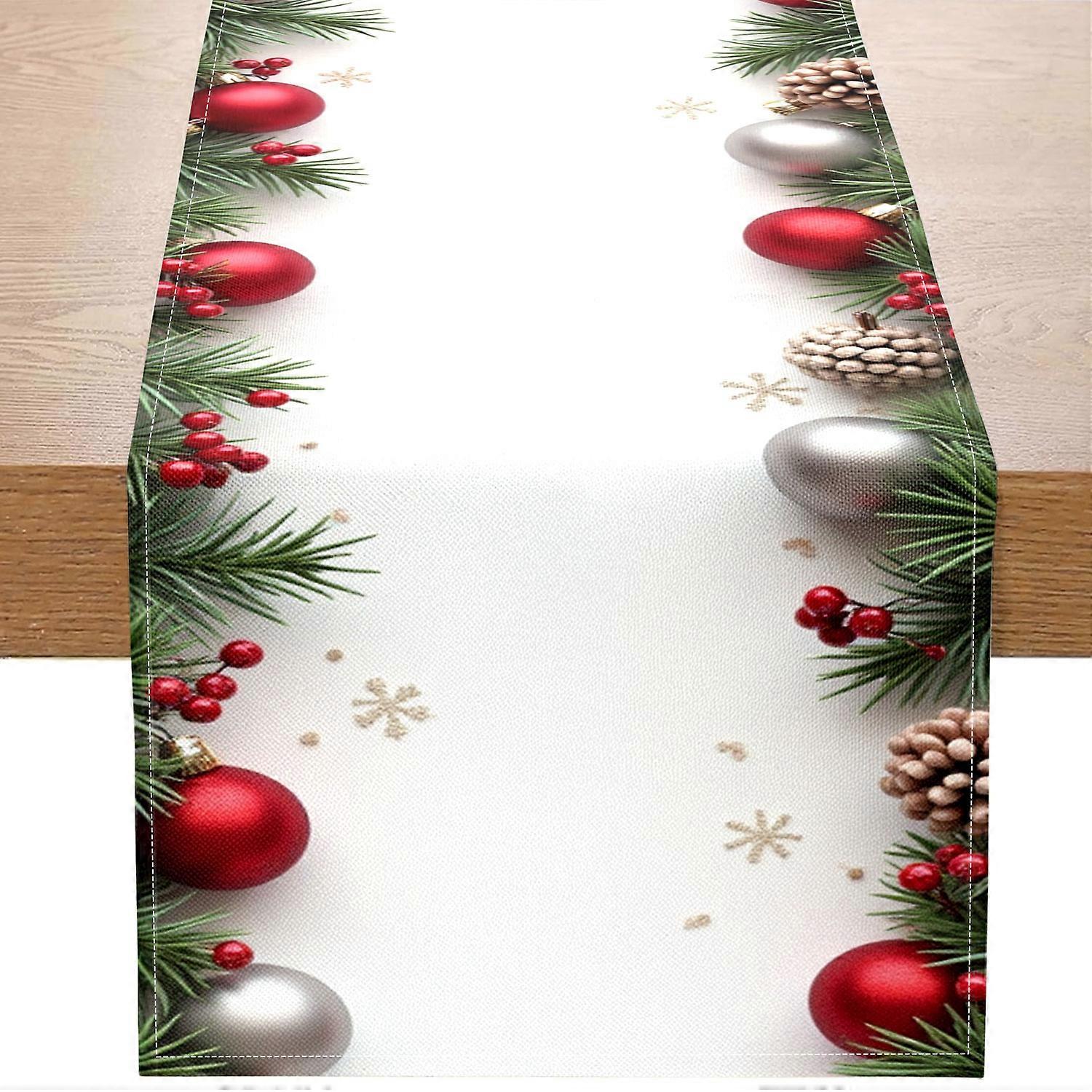 1 Piece of Christmas-Themed Table Runner, Decorated with Colorful Balls, Pine Branches, Pine Cones, Etc., Suitable for Christmas Family Dinn