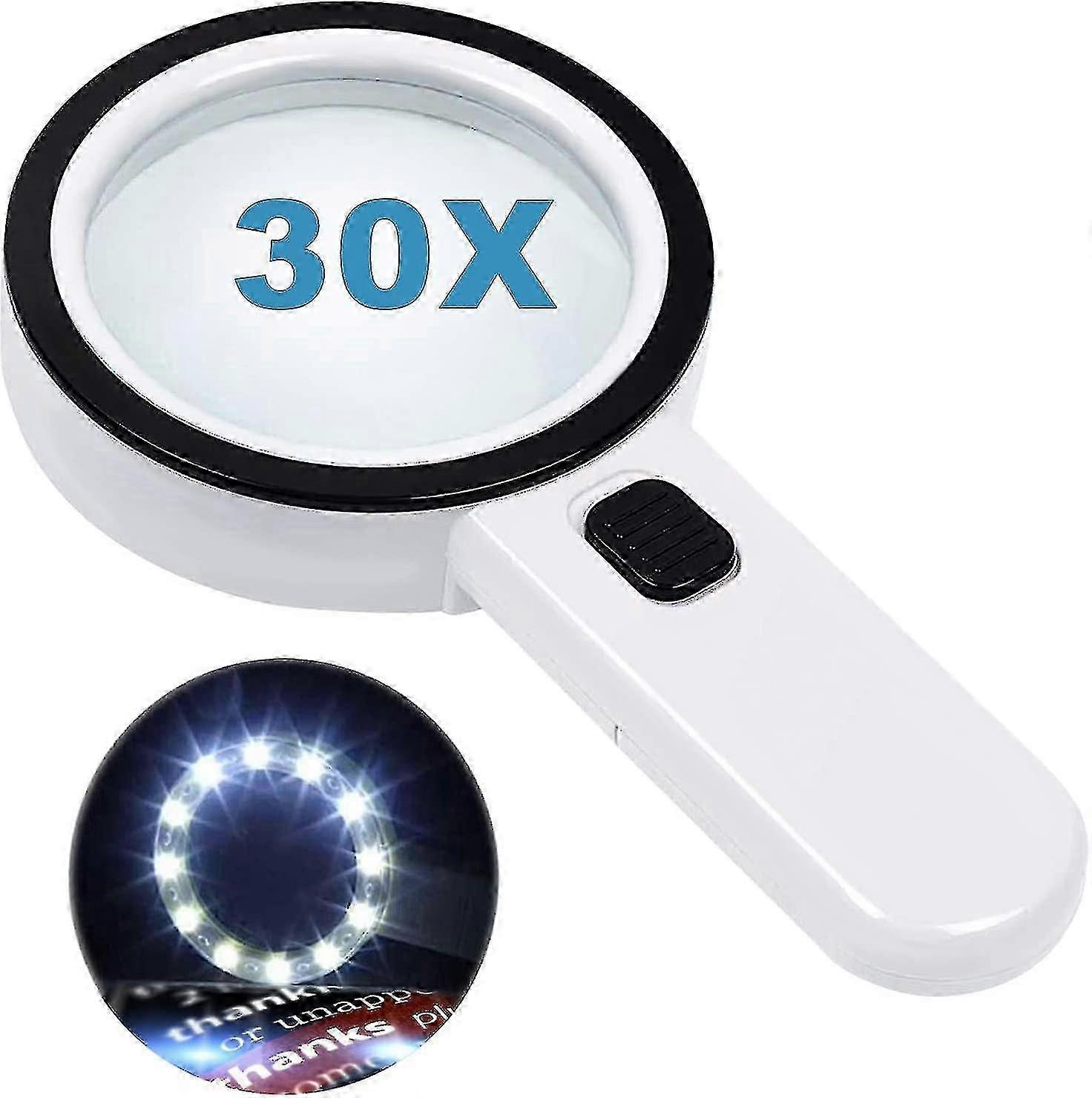 30x Illuminated Magnifying Glass with 12 LED Lights - Handheld for Reading, Stamps & Fine Detail