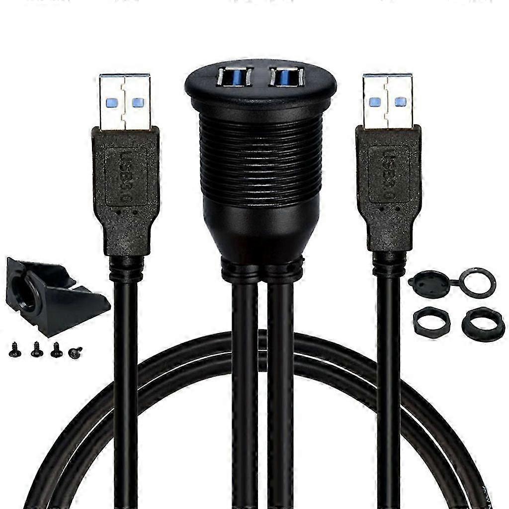 Dual USB 3.0 Car Dash Panel Flush Mount Extension Cable, Male to Female