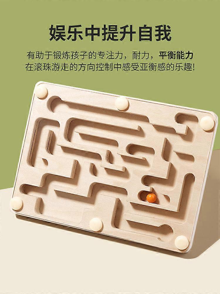 Wooden toy balance maze, handheld bead maze game for children, helps develop concentration and balance.