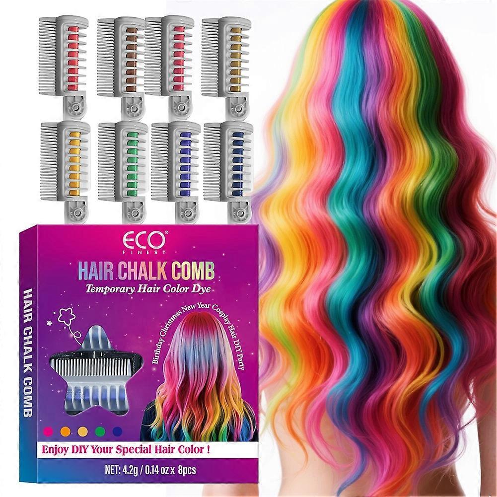 8-Color Festive Fun Hair Chalk Combs, Temporary Hair Dye Washable Hair Chalk Comb for Instant Festival Party Makeup