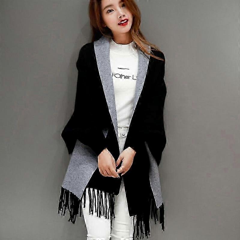 Winter Fashion Women's Knitted Tassel Poncho Cardigan Batwing Sleeve Wrap Shawl Swing Solid