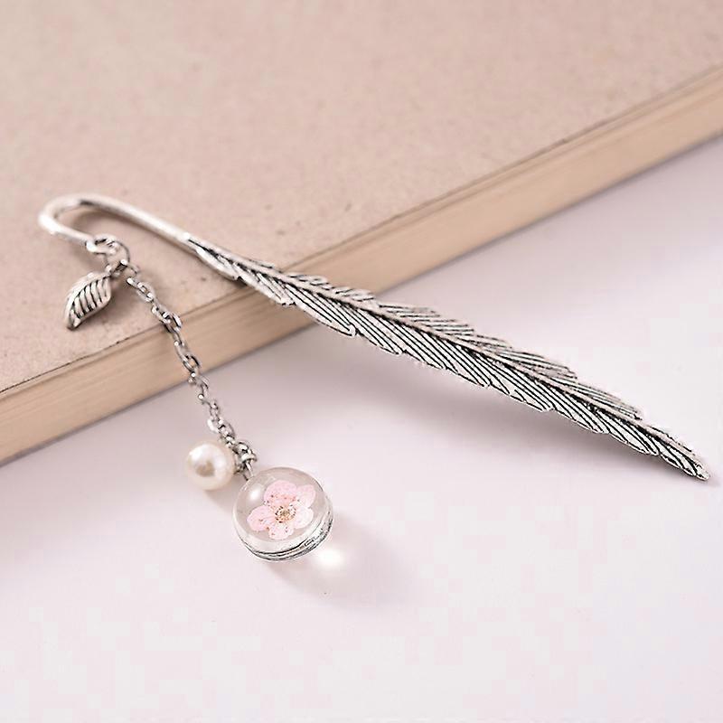 Novelty Dry Flower Bookmark Retro Ball Pendant Book Label For Girls Vintage Jewelry Kids Gift Stationery Book Accessories