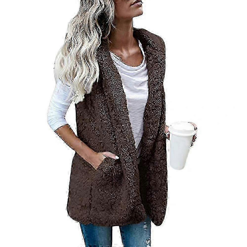 Women Fleece Teddy Bear Body Warmer Vest Tops Sleeveless Fluffy Jacket Gilet Coat _ww