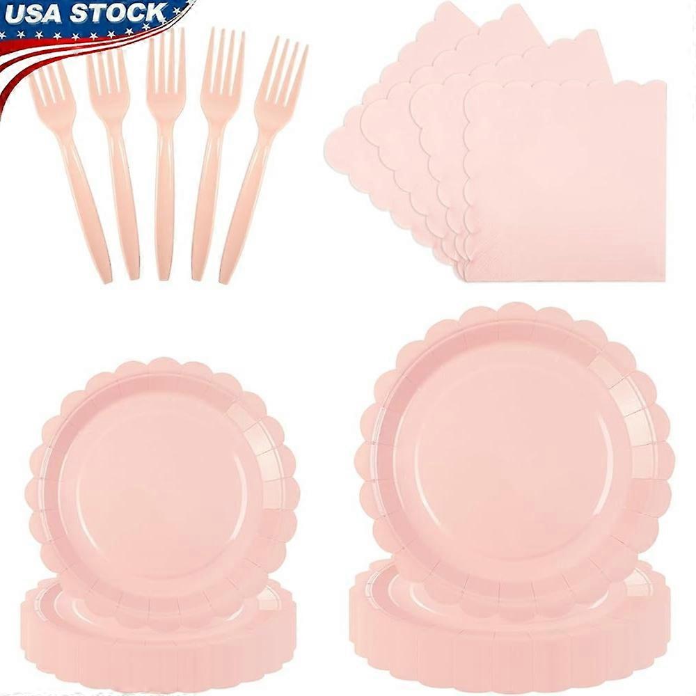 96PCS Light Pink Disposable Plates Napkins Forks Party Tableware Set Birthday Baby Shower Wedding Events