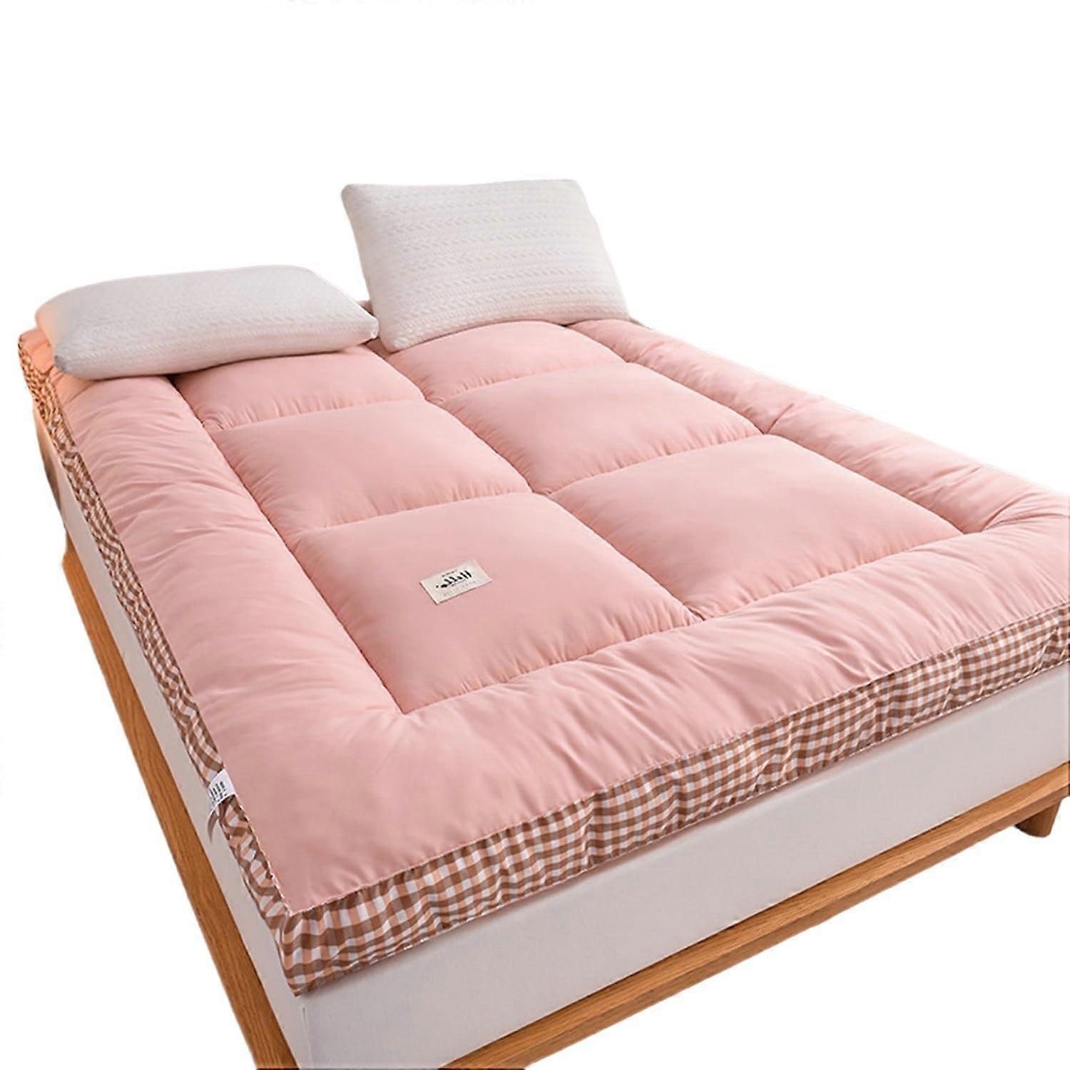 Japanese Floor Mattress Full Size Futon Bed, Thick Foldable RollUp Pad for Adults Camping Pink 180x200cm