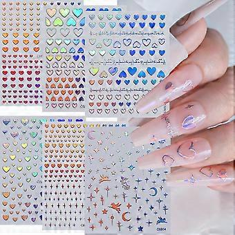 4/6Sheet/Kit Holographic Rainbow Love Heart Nail Sticker 3D Laser Heart Nail Decal Self-Adhesive Love Heart Manicure Slider &*&