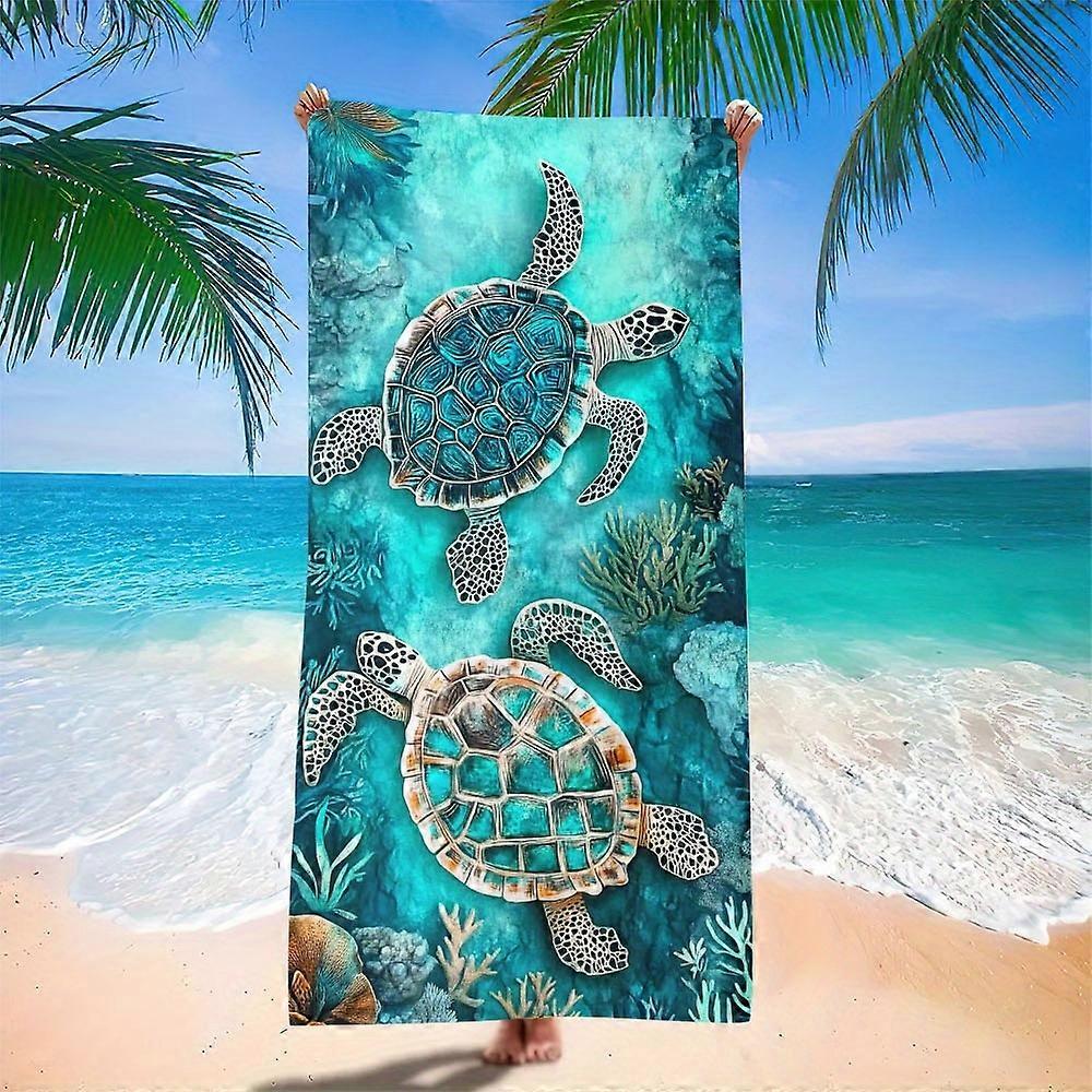 1pc Beach Towel with Colorful Sea Turtle and Coral - Polyester fabric, machine washable, great for travel, swimming, surfing