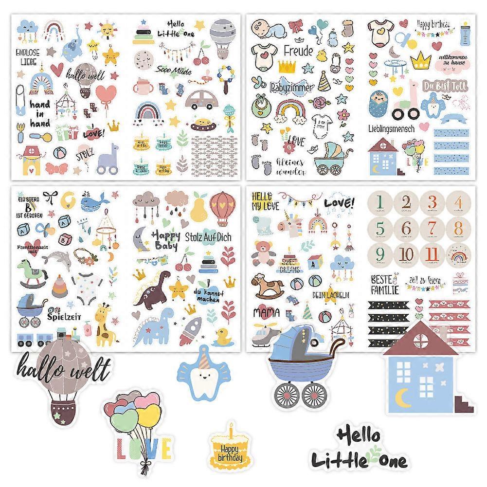 4Sheet/Set New Baby Scrapbook Sticker Cartoon ins Decorative Stickers DIY Scrapbooking Decoration Stickers Kids Toys Gifts Decal