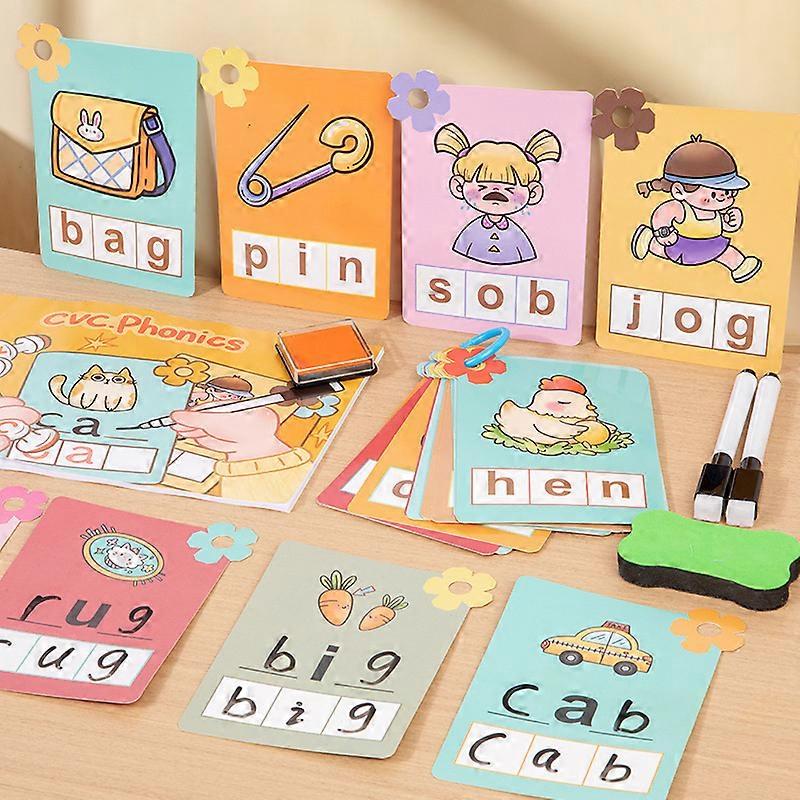Alphabet stamp learning cards for children's early education, English alphabet and word recognition cards, pen control training educational
