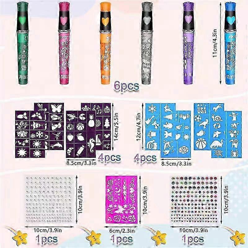 Temporary Tattoo Pen -Tattoo Marker,6 Tattoo Marker Pen with Luminous Tattoos and Stencil, Glitter Tattoo Gel Pens for Kids and Adults Party