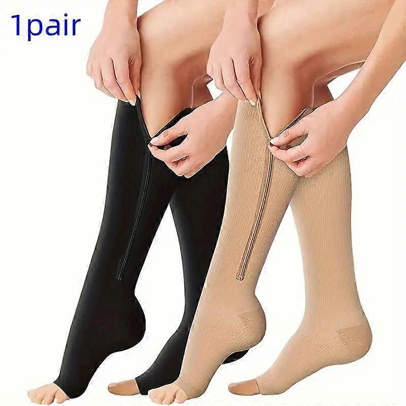 Unisex Open Toe Compression Athletic Socks, 1 Pair Breathable Comfortable Leg Support Stockings, Sports Socks for Work & Travel