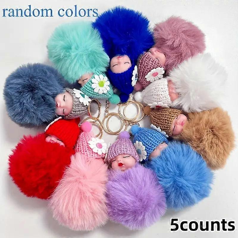 Cute Plush Doll Keychain, 5 Counts Plush Doll Decoration, Plush Doll Pendant for Car Interior Decoration, Car Interior Accessories for Women