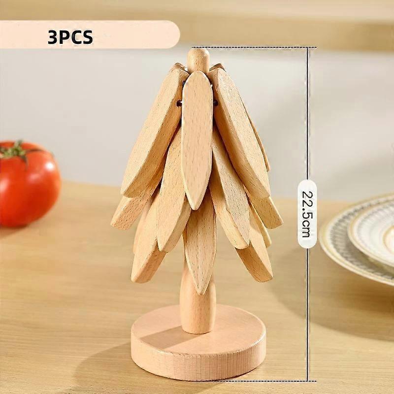 3PCS Tree Design Stand Wooden Trivets Decorative Anti Scald Heat Resistant Table Mat Coaster Wood Placemats Pot