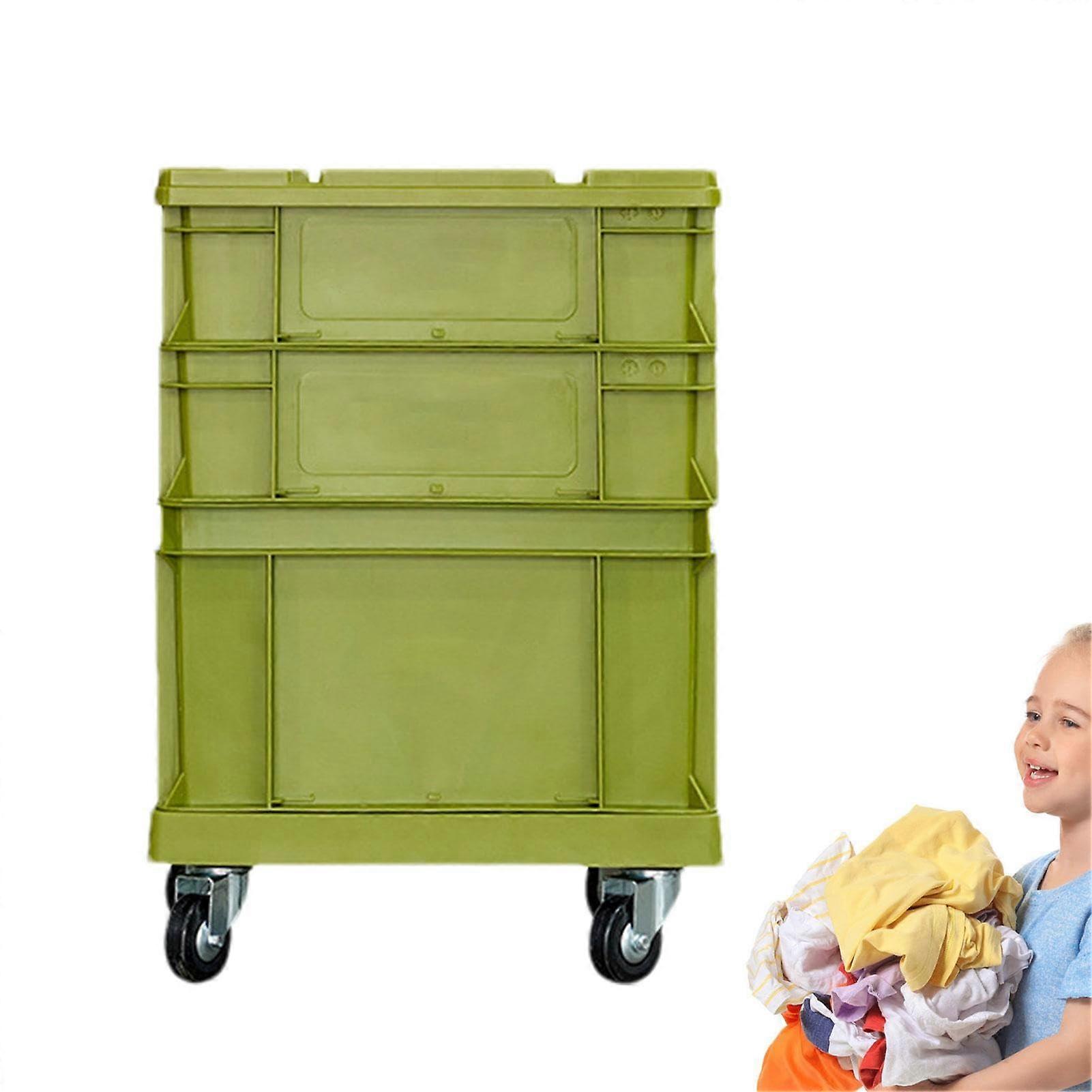 Industrial Storage Box with Wheels and Lid, Stackable Tool Storage Container Olive Green