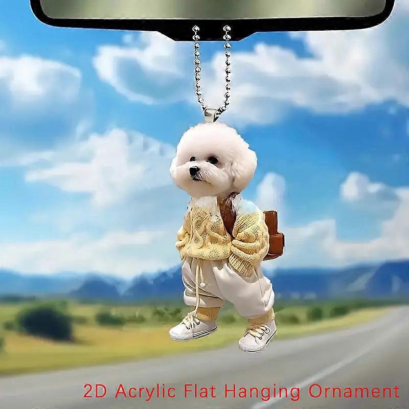 Creative Acrylic Puppy Man Backpack Car Hanging Pendant Rearview Mirror Ornament Cute Auto Interior Decor Gift for Women Men