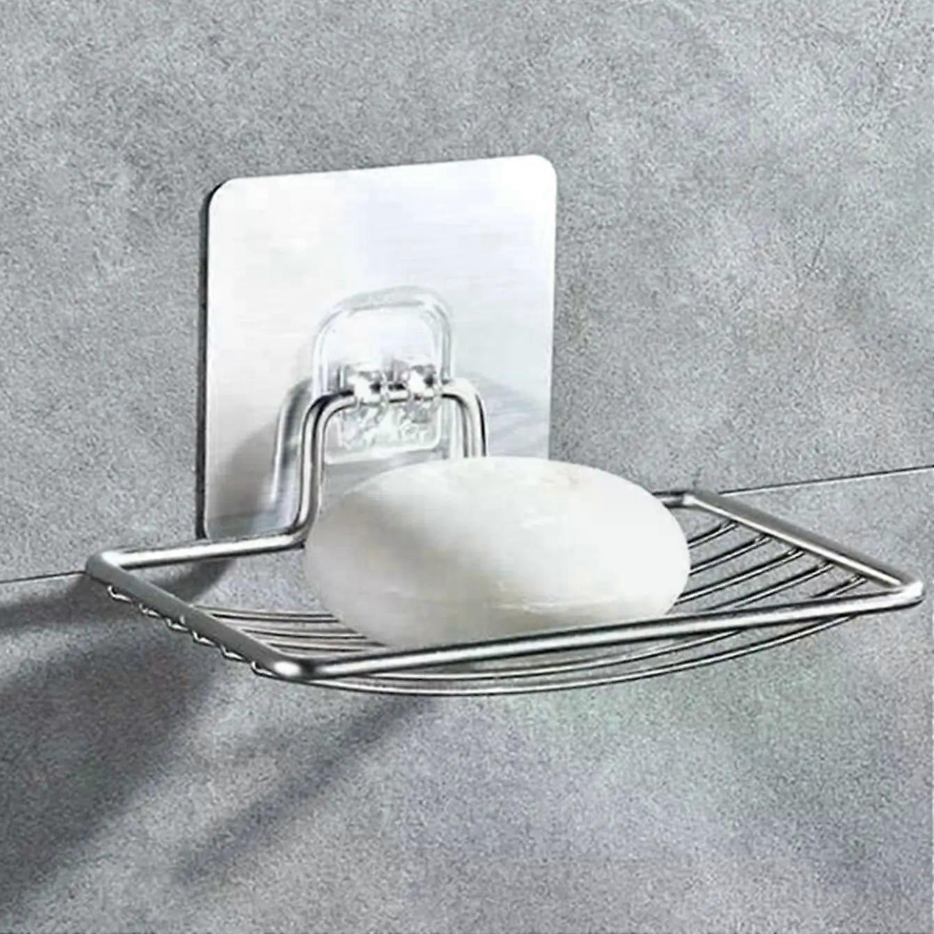 1pc-Stainless Steel Soap Rack Punch-free Nail-free Bathroom Single Layer Drain Wall Hanging Sucker Soap Box Light Luxury Shelf
