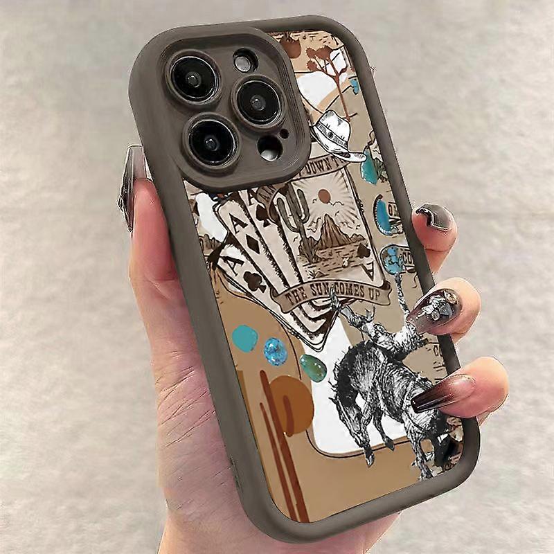 Retro Western Cowboy Pattern Phone Case For iPhone 13 16 15 14 12 11 Pro Max SE2 8 7 Plus X XR XS 15 16 Soft Shockproof Cover