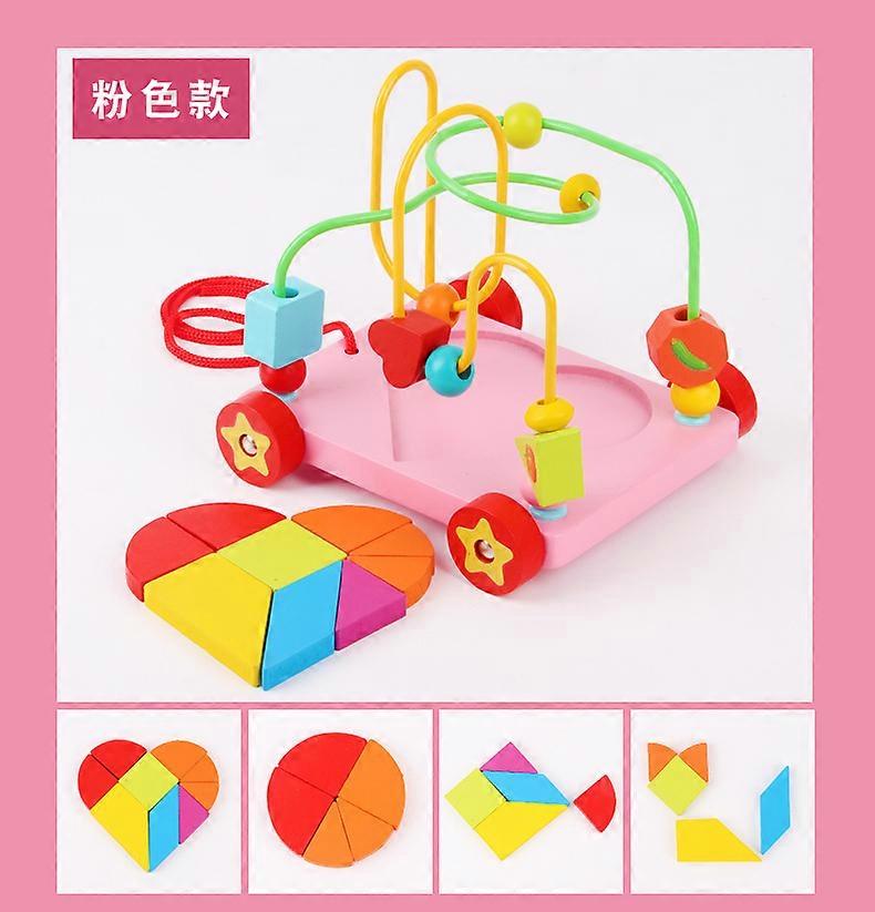 Wooden beaded pull cart for infants and toddlers, with pull rope, multi-colored cartoon toy, for early learning to walk (2-3-4 years old)