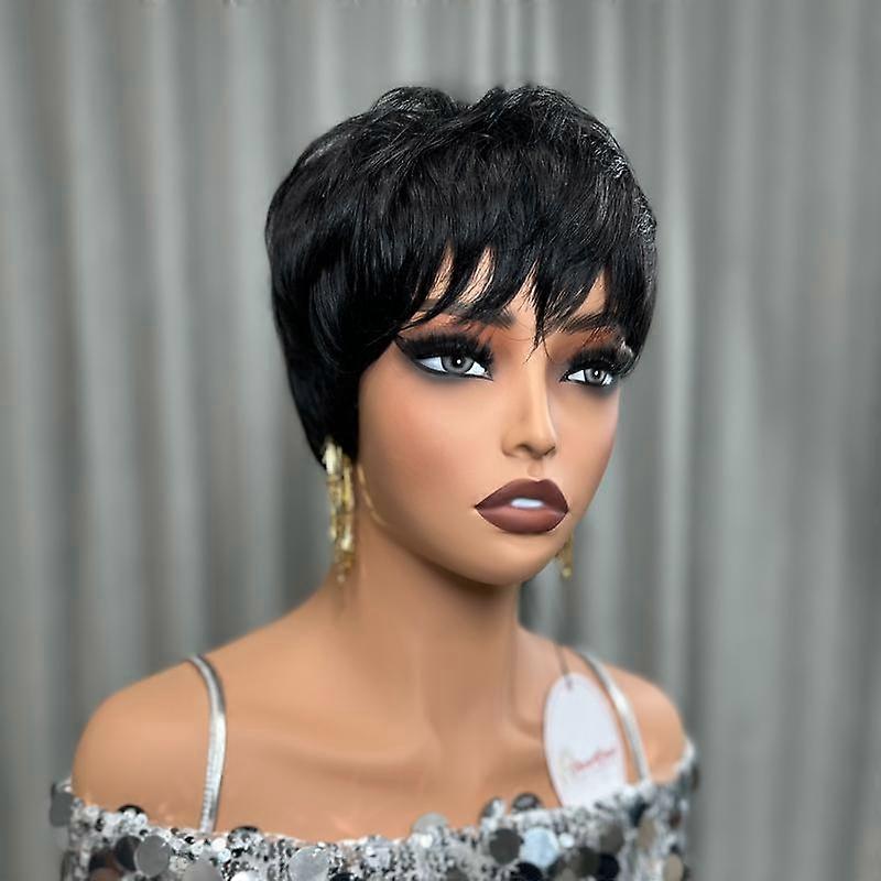 ShowReal 036 Short Pixie Cut Wigs Short Straight Brazilian Human Hair Wigs With Bangs Ready To Go Natural Black Burgundy Color Full Machine