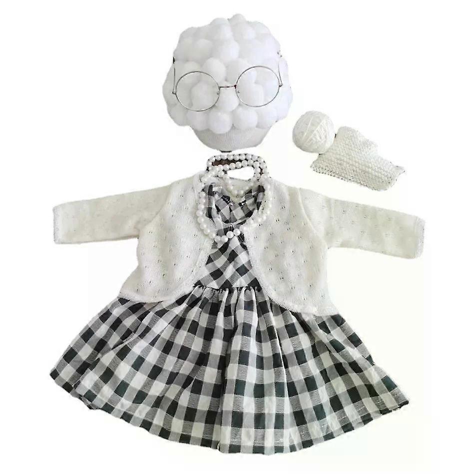Baby Girls Grandma Cosplay Costume - Funny Newborn Photography Props with Matching Hat Cute Infant Outfits for Photo Shooting