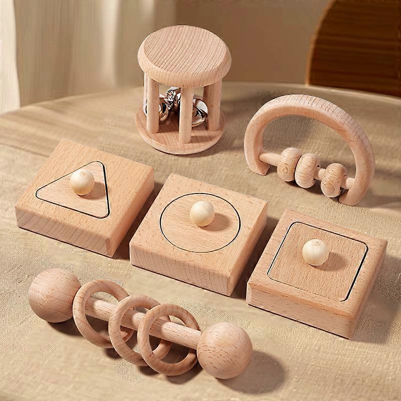 Children's educational toy, beech wood rattle, 0-3 year old infant early education grasping and biting geometric shape matching set